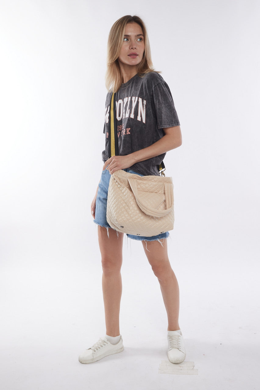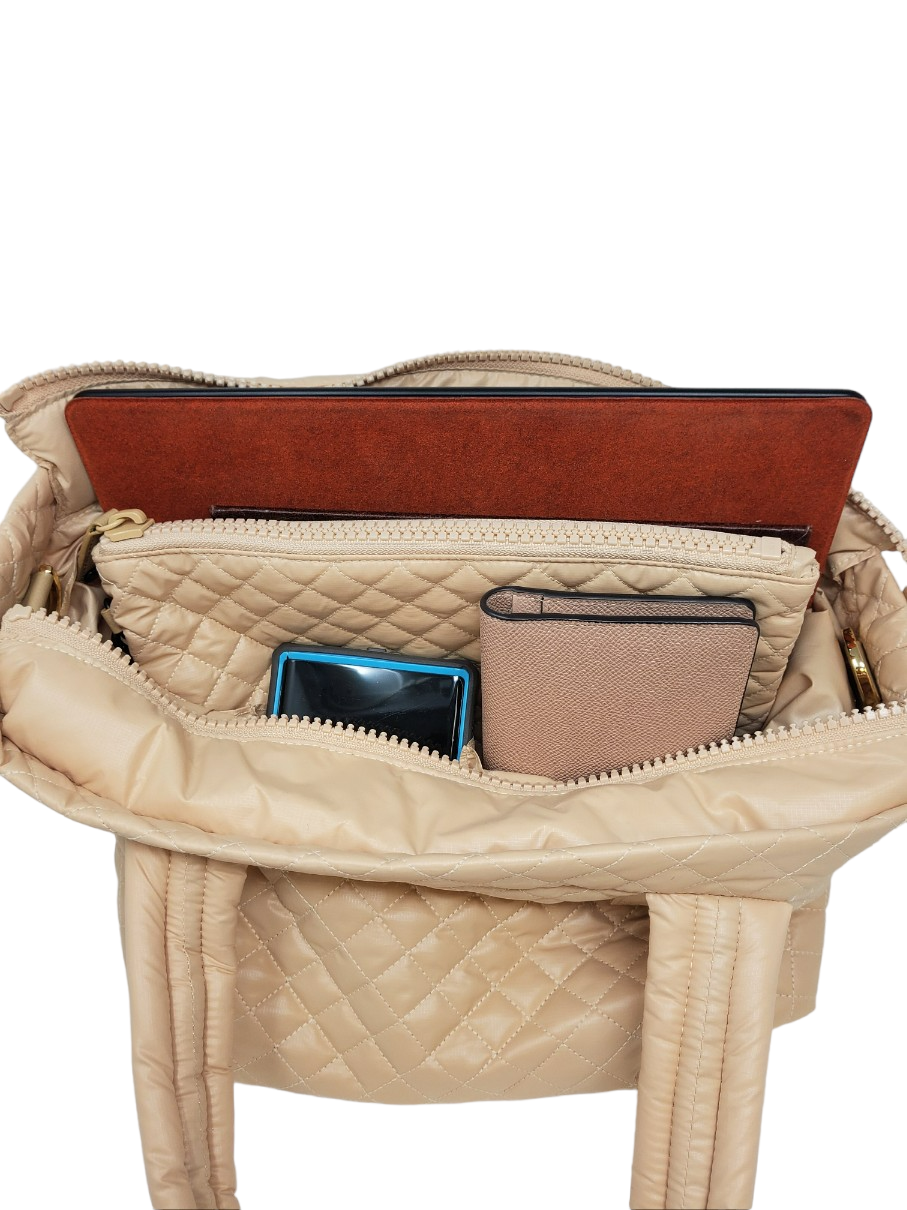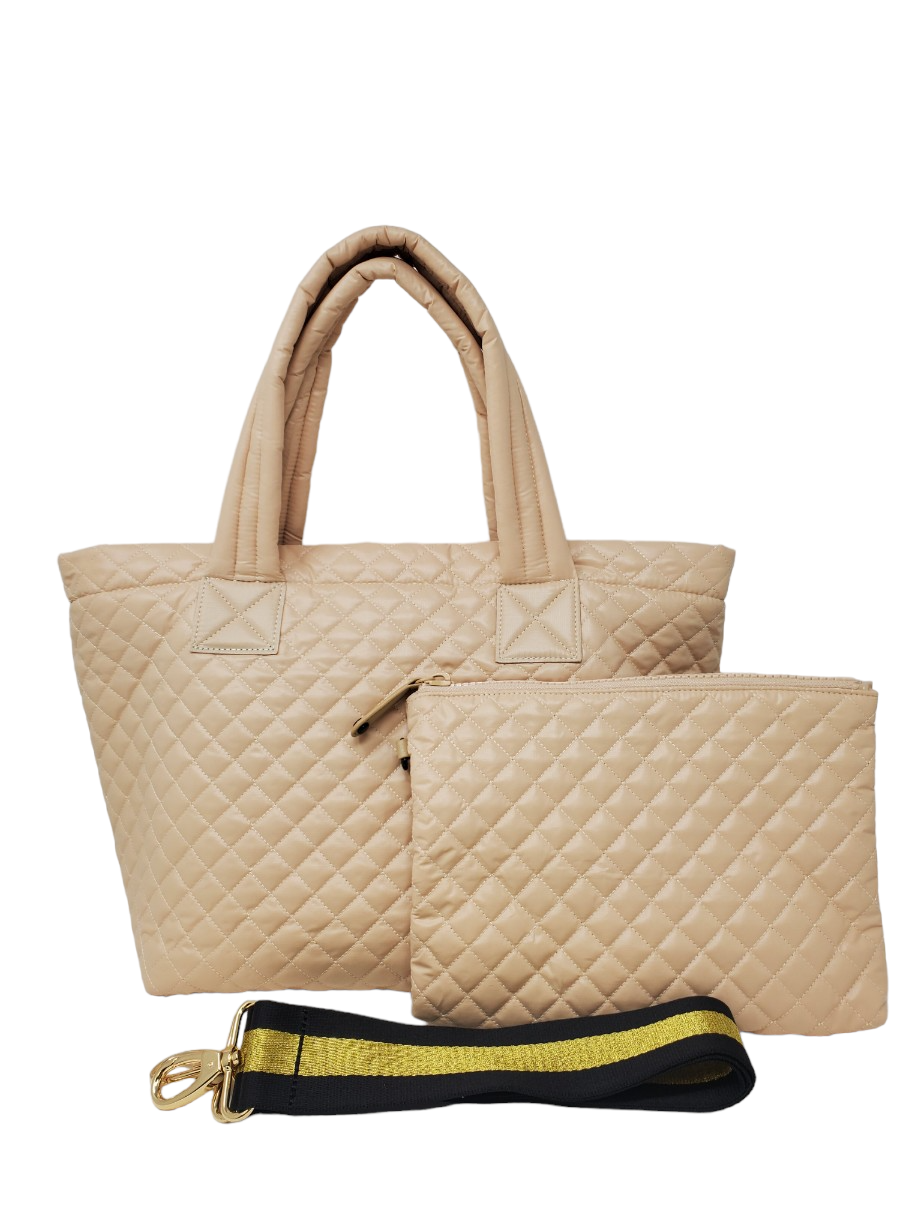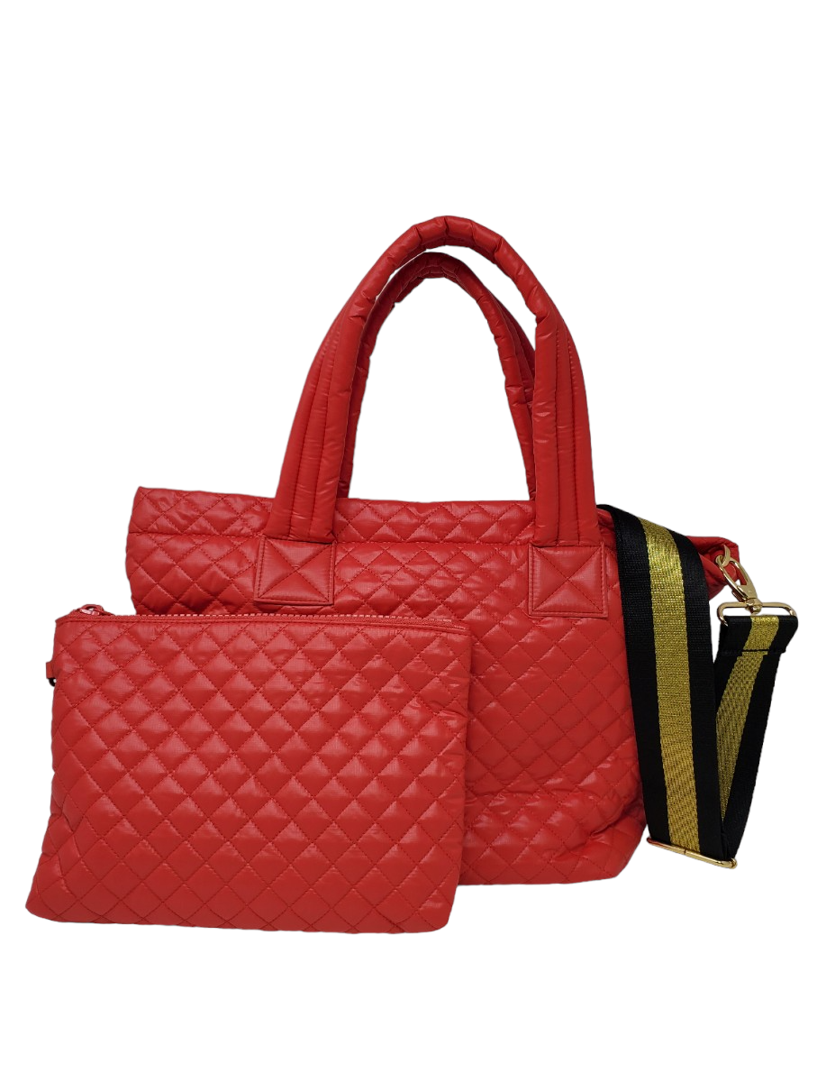 ClaraNY Lightweight Comfortable Medium Quilted Tote with pouch and shoulder strap