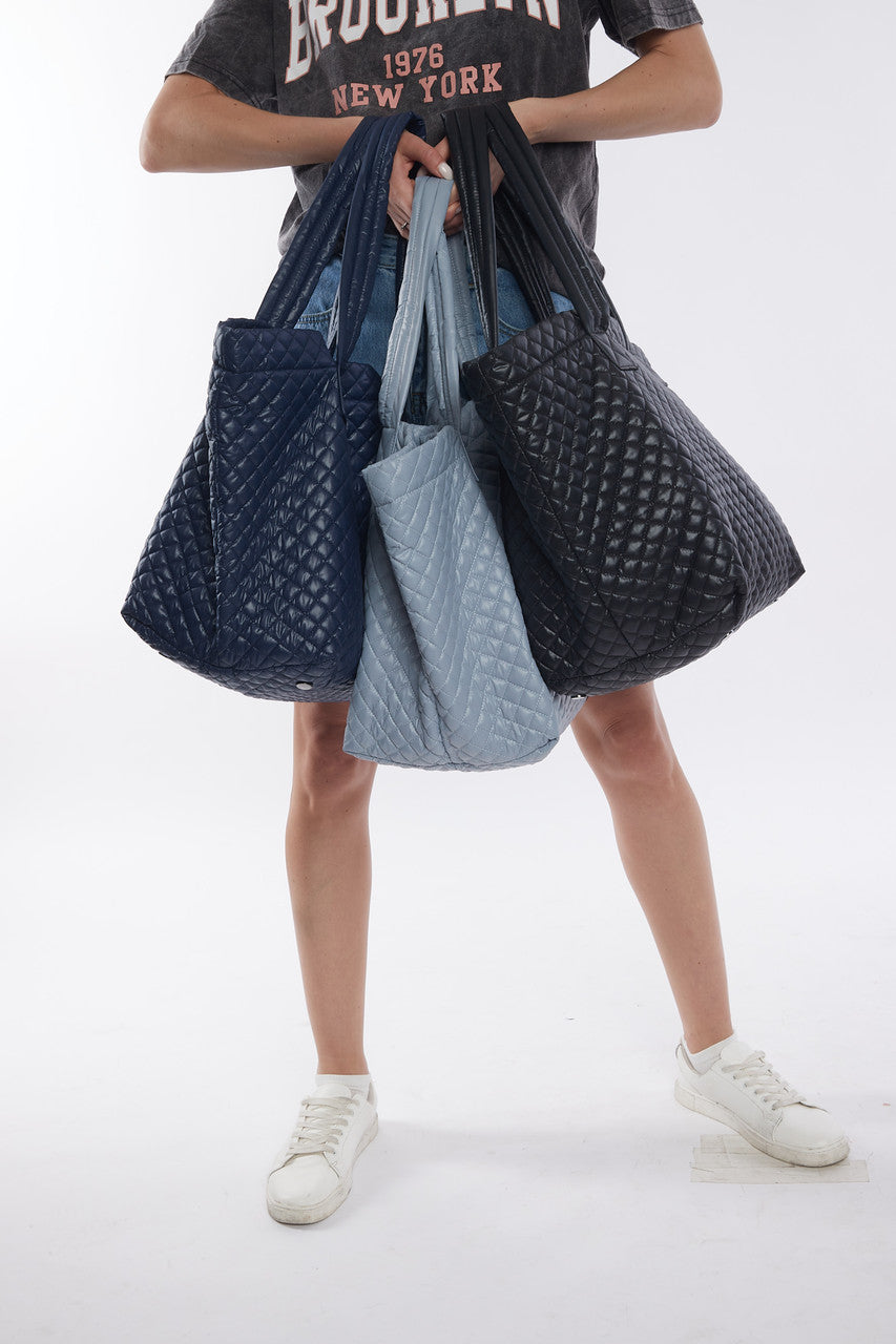 ClaraNY Ultra lightweight Zipper closure Quilted Large Tote with Pouch water repellent